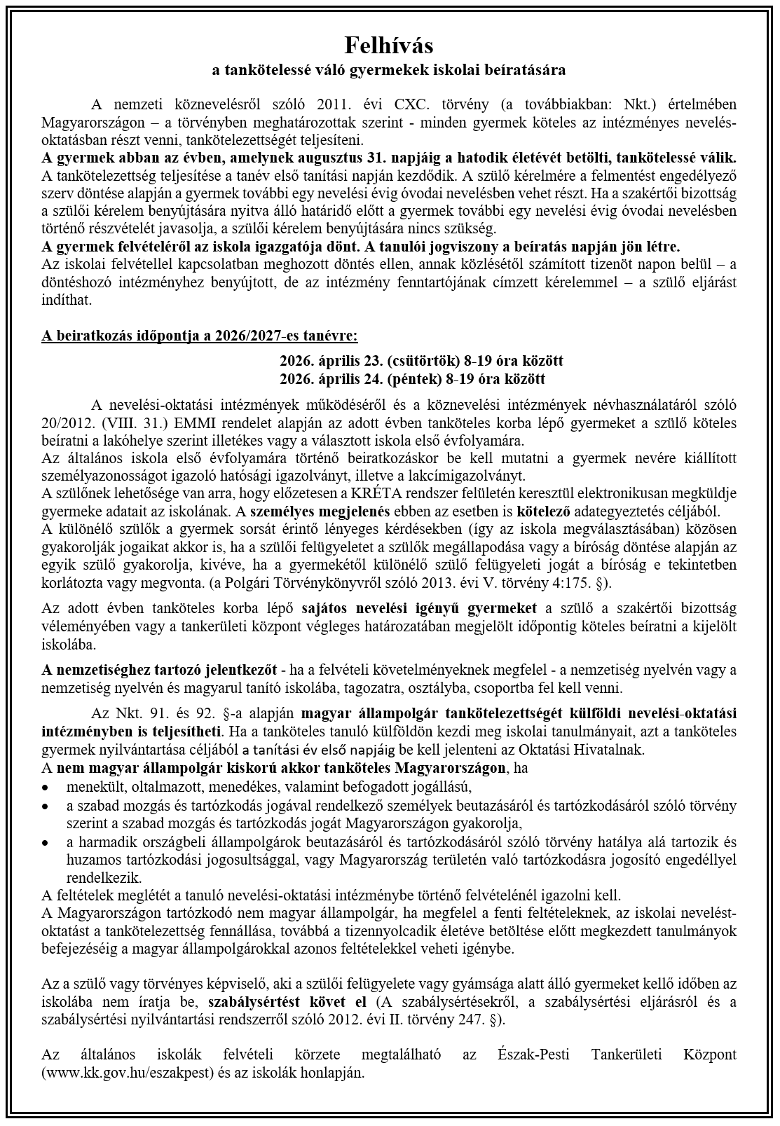 Ez a módosítás a 2026-2027. tanévre vonatkozik.